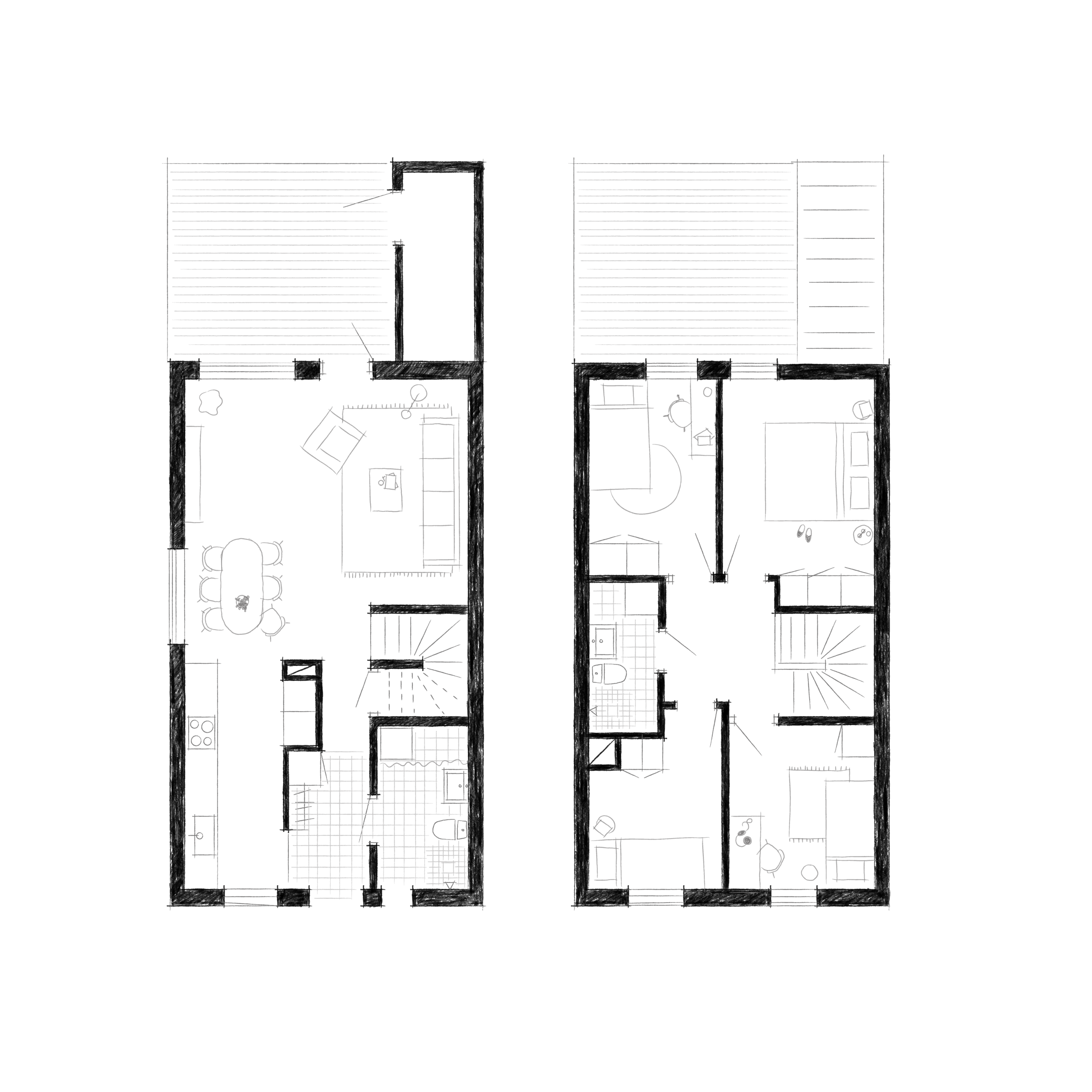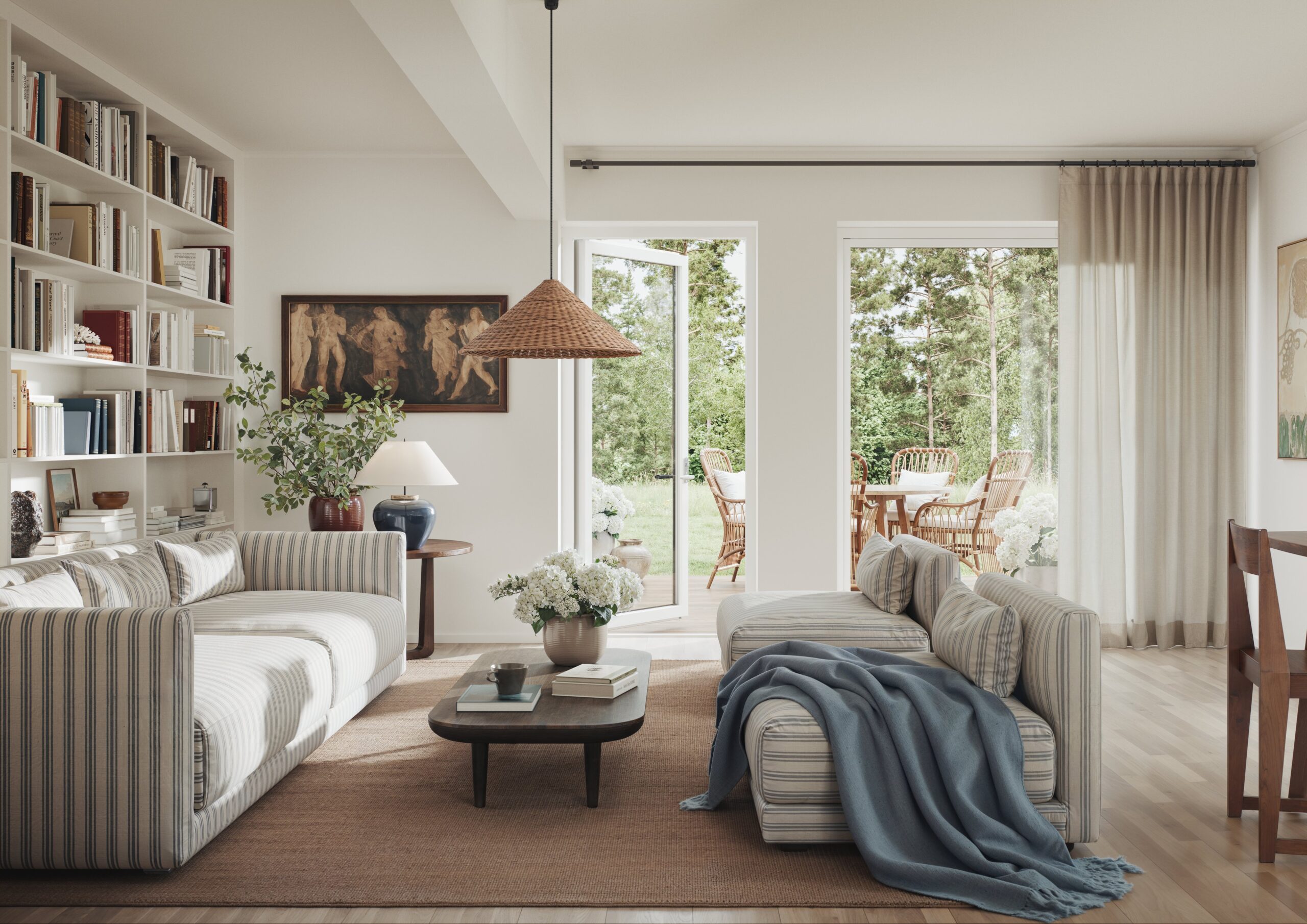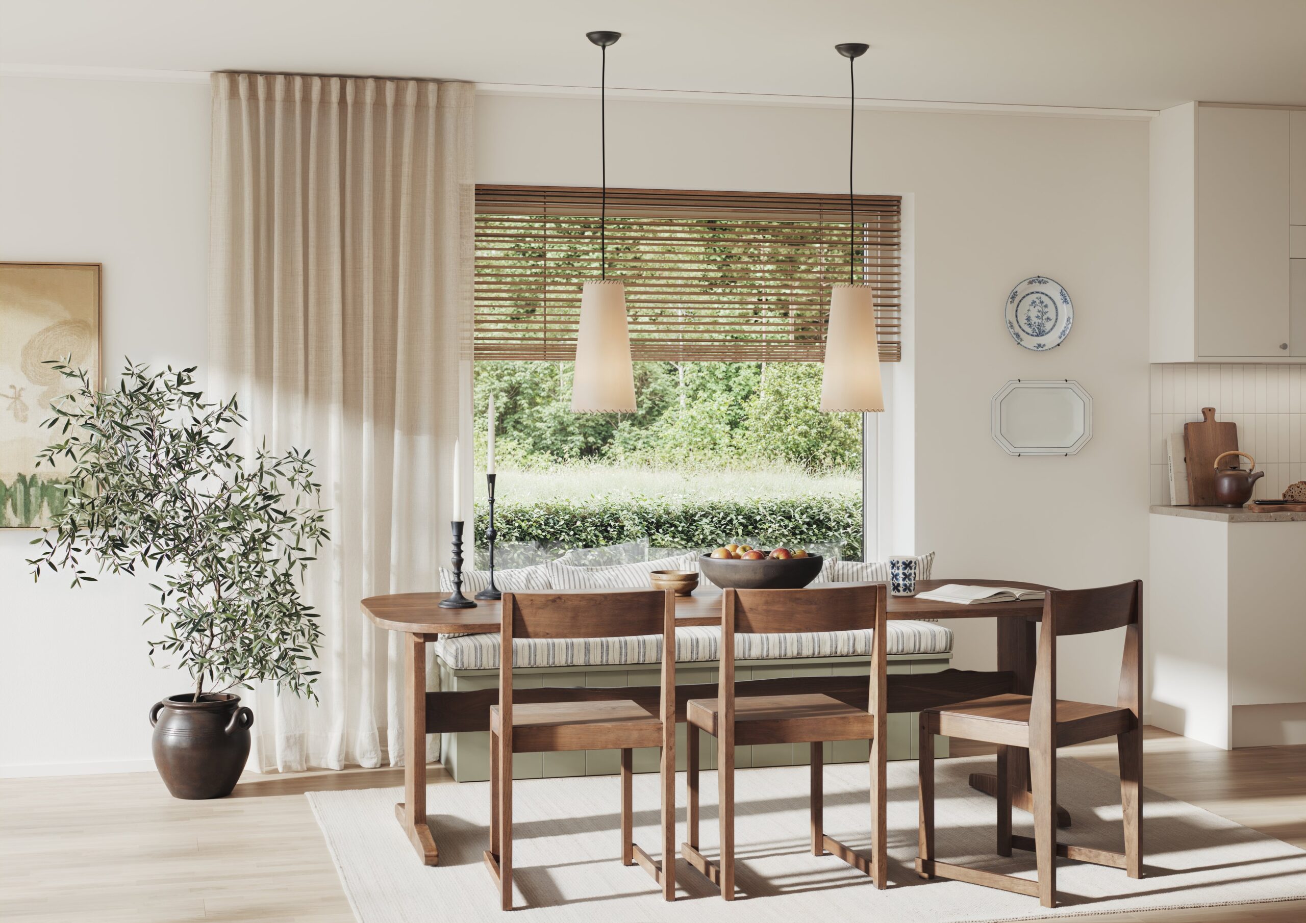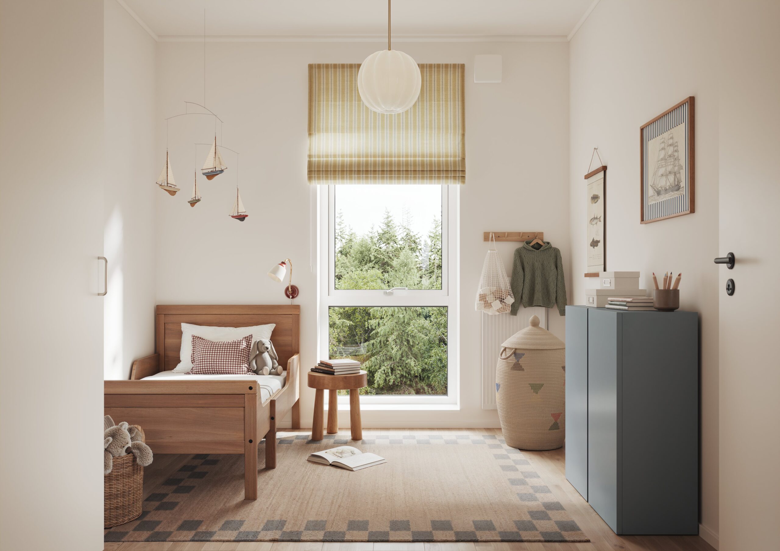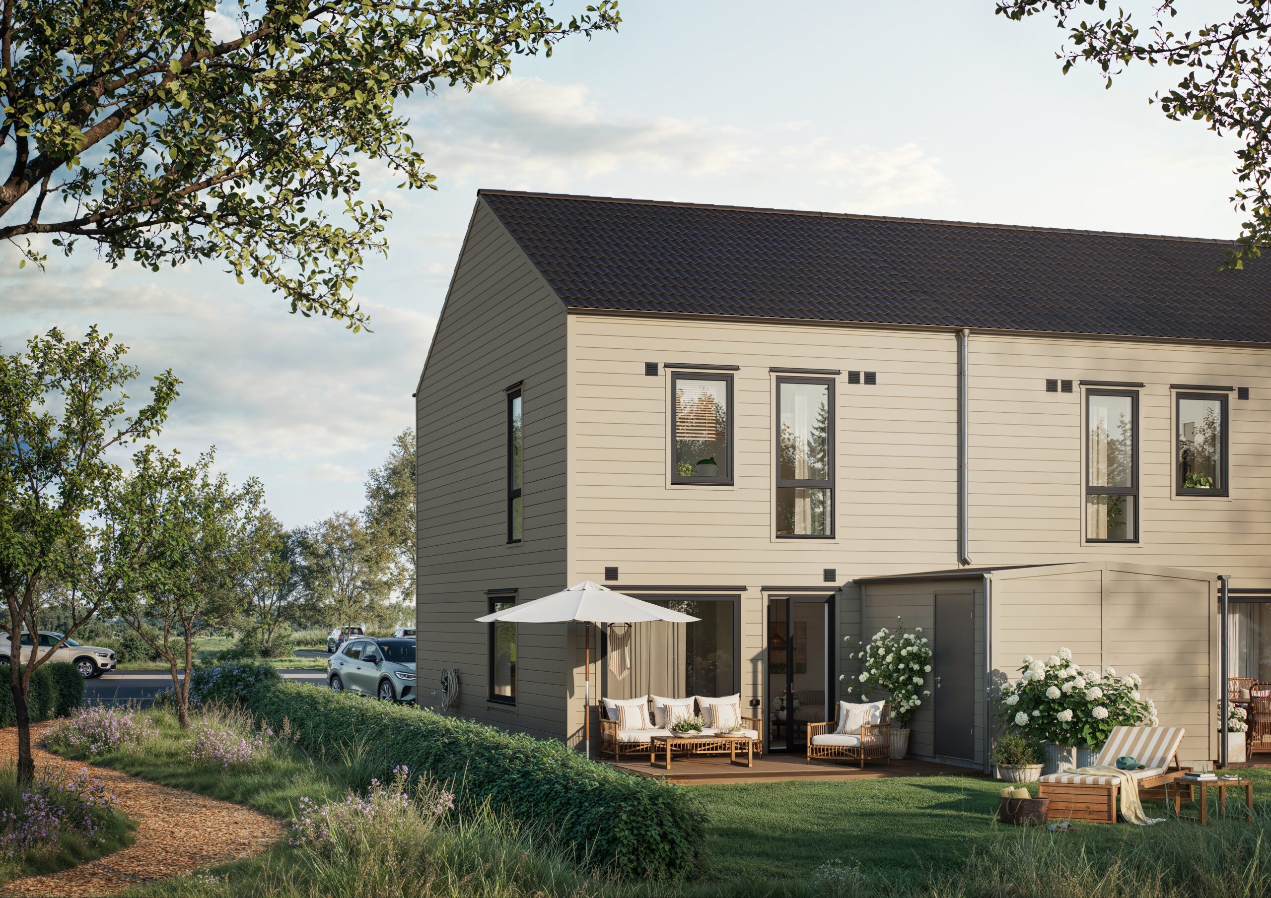 In Skvalpet and Brisen, modern architecture meets lakeside living in two harmonious neighbourhoods by the shores of Lake Mälaren. Here you live in spacious 99 sqm rental townhouses across two floors, designed by Blooc and built by Derome, with a focus on function, form and everyday quality.