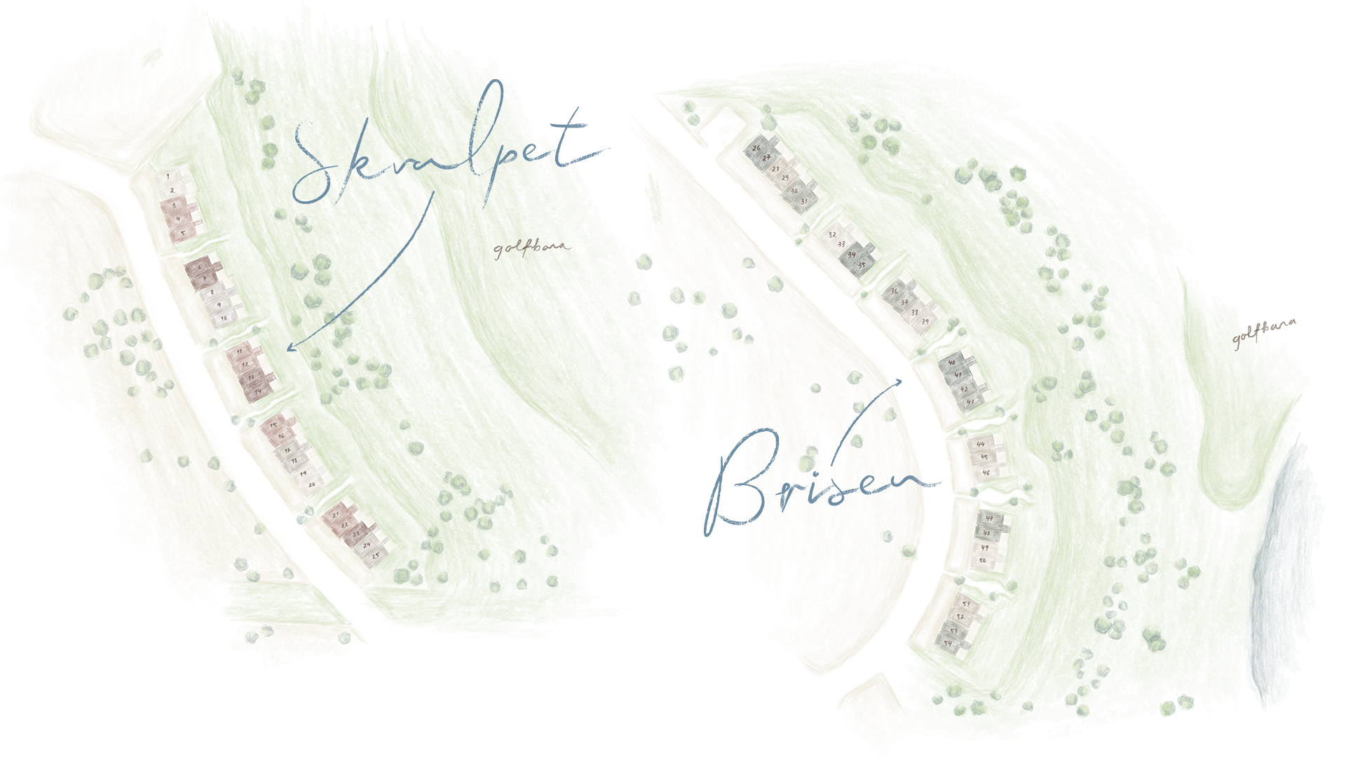 With Skvalpet and Brisen, we set out to create two neighbourhoods that reflect the best of Bro Mälarstrand – the lakeside setting, the proximity to the golf course and the balance between active and relaxed living. The townhouses combine simplicity, comfort and elegant design, blending naturally into their surroundings.